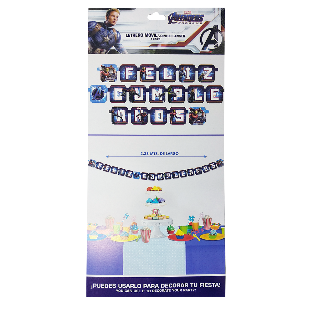 ¡Celebra a tu cumpleañero con nuestro increíble Letrero Móvil temático de Avengers Endgame! Con la leyenda: "Feliz cumpleaños". ¡Haz que se divierta en grande!