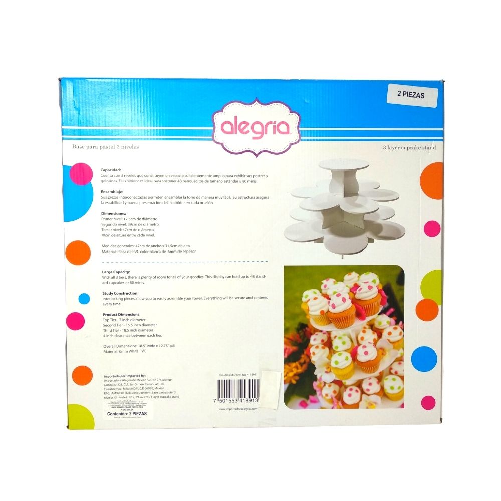 Dimensiones: Primer nivel 17.5 cm de diámetro; Segundo nivel 39 cm de diámetro; 47 cm de diámetro. 10 cm de altura entre cada nivel.