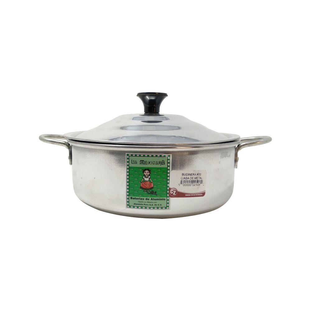 Budinera #20 con asa de metal y diseño ergonómico. ¡Resistente, práctico y versátil para preparar diversos alimentos! Producto hecho en México con excelente calidad.
