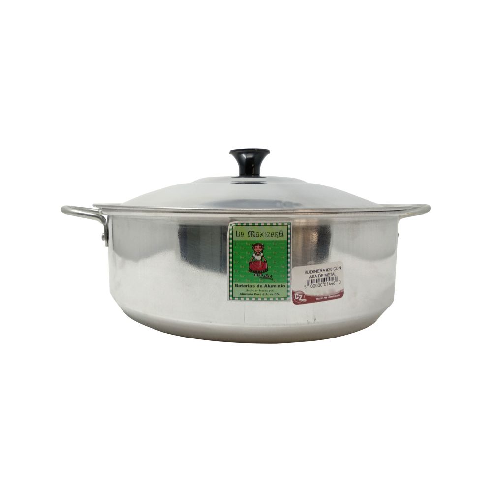 Budinera #26 con asa de metal y diseño ergonómico. ¡Resistente, práctico y versátil para preparar diversos alimentos! Producto hecho en México con excelente calidad.