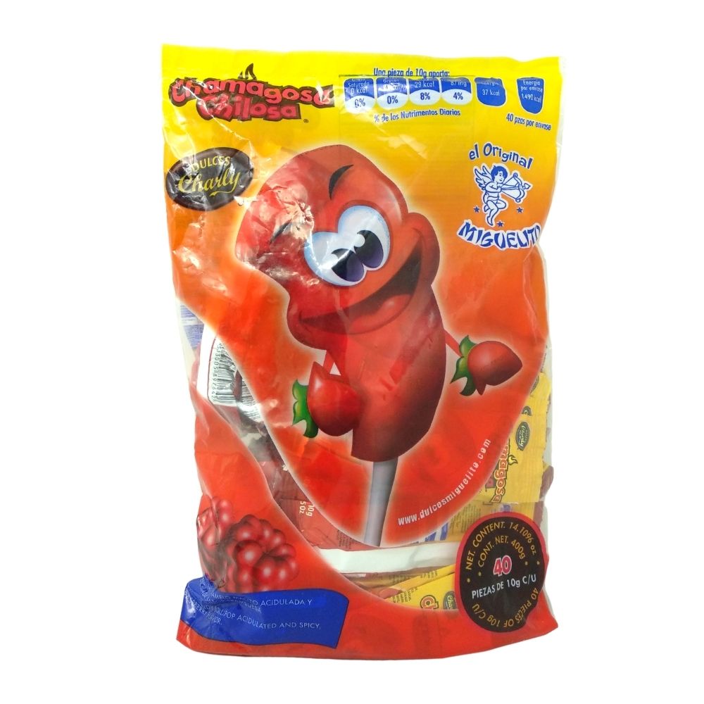 Perfecta y deliciosa combinación. ¡Disfruta de las paletas sabor frambuesa con el tradicional chilito en polvo Miguelito!