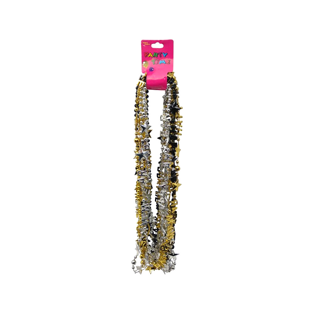 ¡Celebra el Año Nuevo de manera divertida con nuestros collares de perlas de color dorado, plata y negro! Perfectos para pasar divertirte en familia.