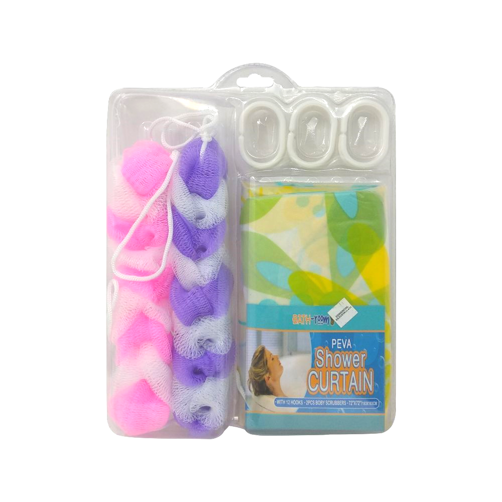 Contenido: 12 ganchos; 2 Esponjas para el cuerpo, 1 Cortina.