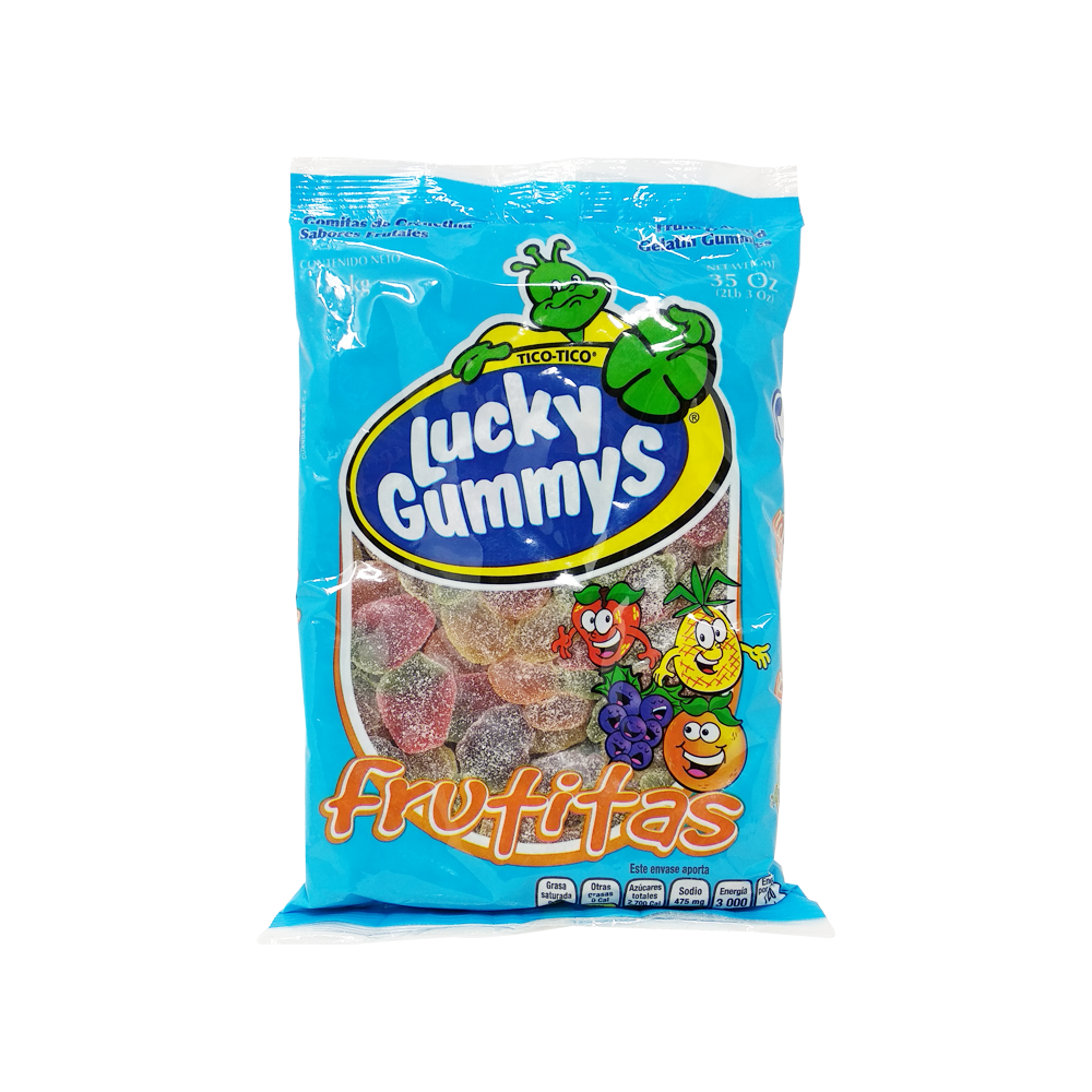 ¡Disfruta de estas divertidas gomitas en forma de frutitas sabor piña, fresa, uva y naranja! Ideales para el antojo de la tarde.