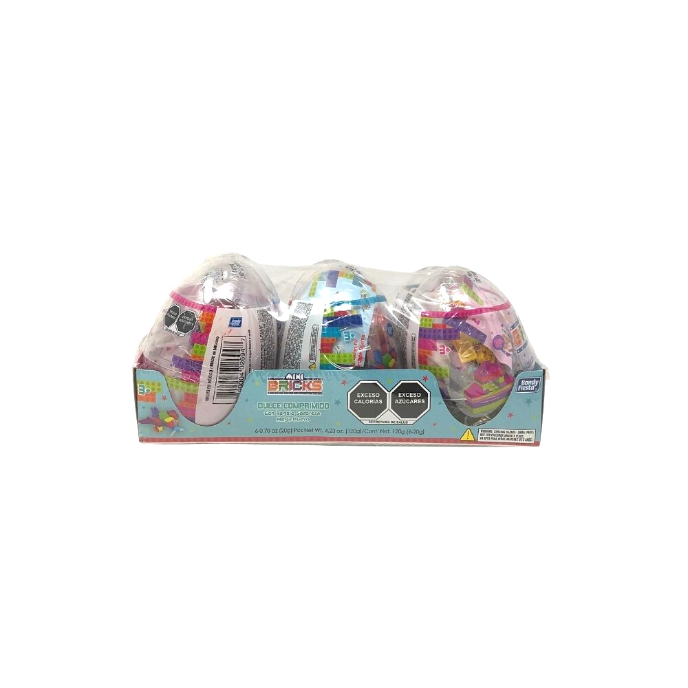 Dulce comprimido dentro de un increíble Huevo Mega de plástico con temática de Mini Bricks. ¡Perfecto para sorprender a los pequeños del hogar!