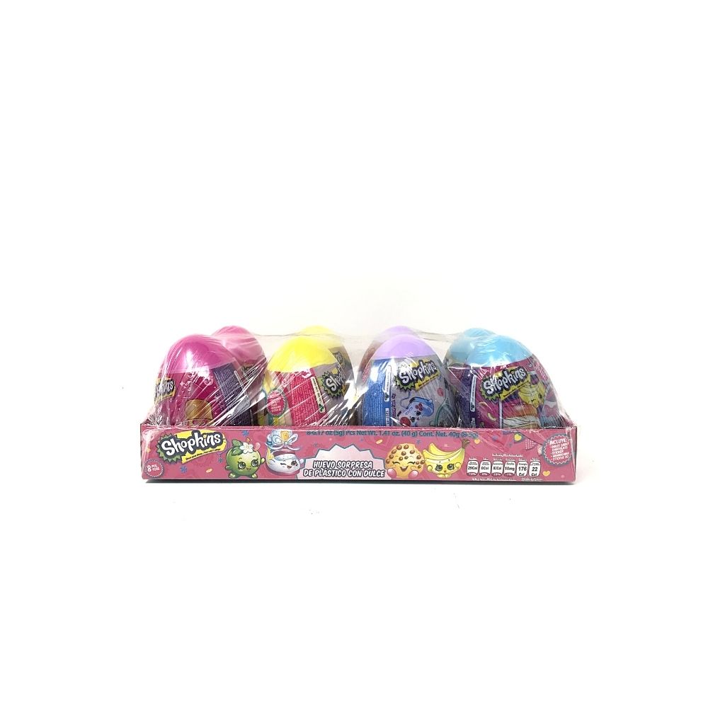 Dulces confitados dentro de un increíble huevo sorpresa de plástico con temática de Shopkins. ¡Perfecto para sorprender a los pequeños del hogar!
