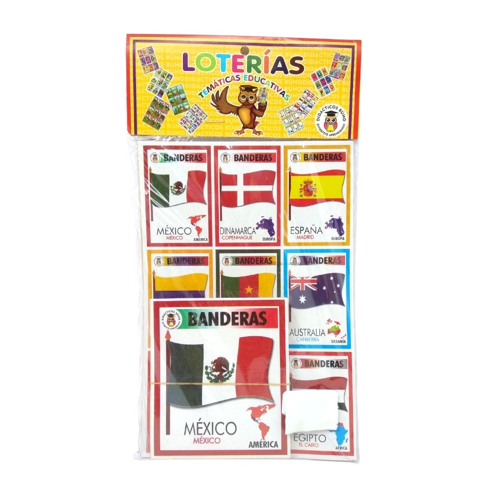 ¡Diviértete en familia y que tus pequeños conozcan las banderas del mundo con nuestro juego de mesa de lotería didáctica! Perfecto para regalar.