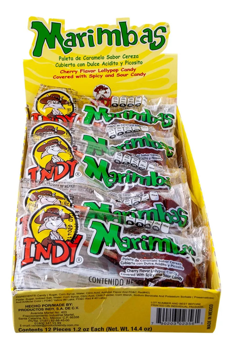 ¡Deliciosas Marimbas, ideales para un antojo o para tus eventos!. Paletas de Caramelo sabor cereza con una riquísima cubierta de dulce acidito y picosito.