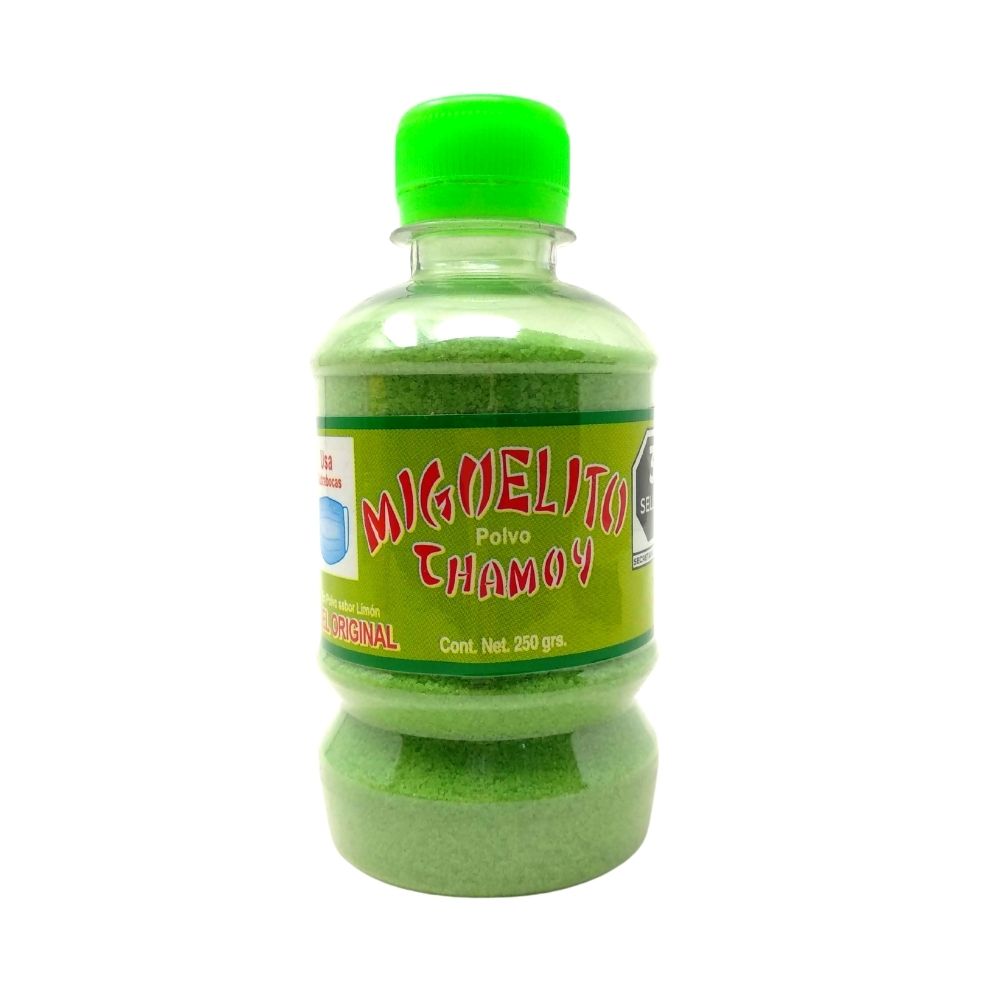 Deliciosa mezcla de chile, sal y azúcar para aderezar botanas, frutas, verduras o snacks. ¡Disfruta del rico sabor de Miguelito sabores!