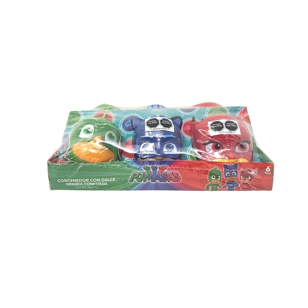 ¡Sorprende a tus pequeños con los divertidos contenedores de PJ Masks! Incluyen deliciosos dulces de gragea confitada.