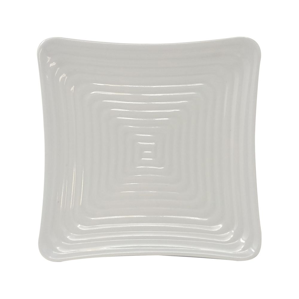 Bellísimo plato con relieve marca Távola. Fabricado en brillante y resistente melamina blanca. Te encantará ver cómo su original diseño destaca la presentación de tus exquisitas creaciones culinarias.