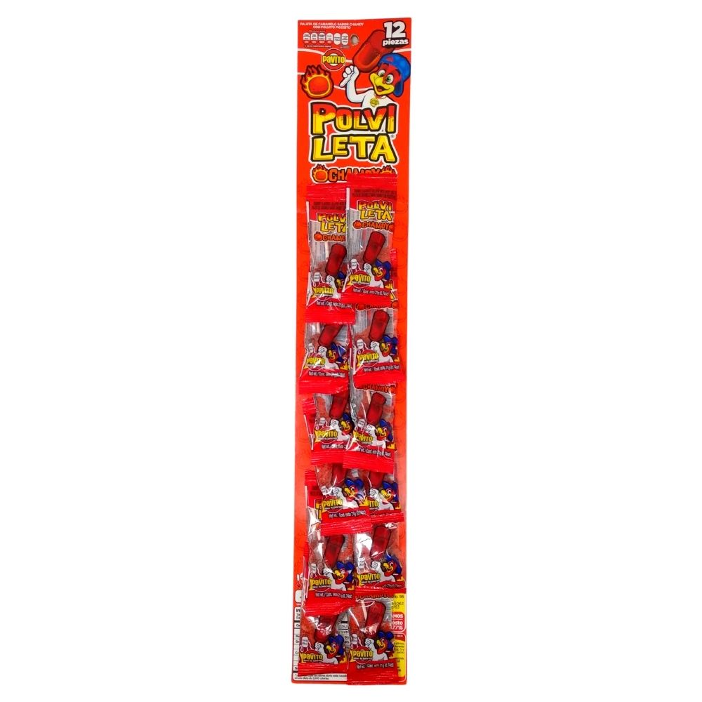 Paleta de caramelo sabor chamoy con polvito picosito. ¡Perfecto para tus bolsitas de dulces!