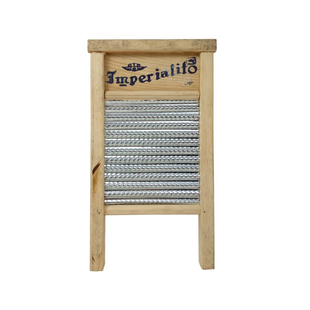 Tallador manual pequeño para ropa, con hoja ondulada galvanizada y marco de madera resistente. Perfecto para lavar a mano tus prendas más delicadas.