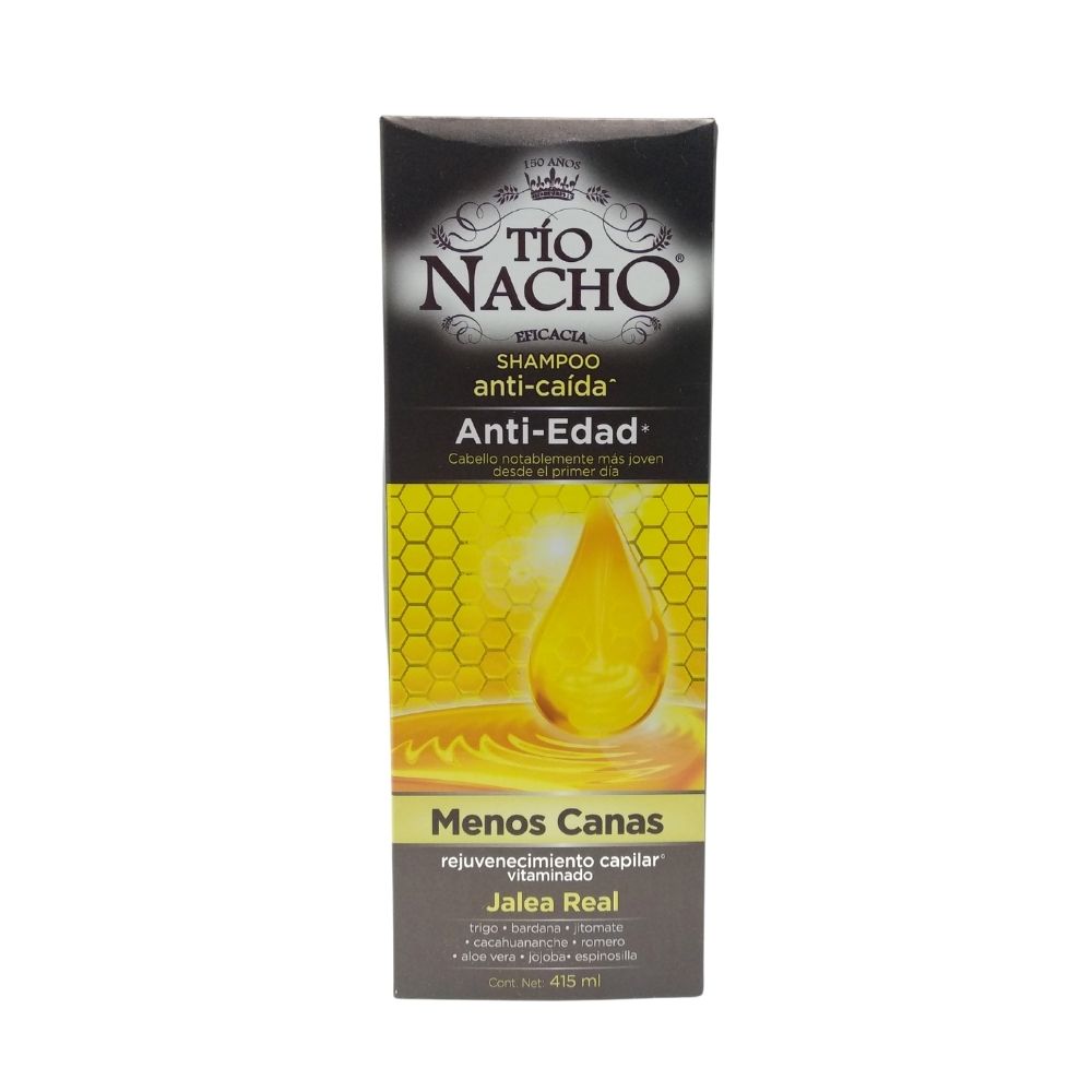¡Dale un toque fresco a tu cabello con nuestro shampoo Tío Nacho anti-edad! Con extractos de origen natural y propiedades que auxilian en el rejuvenecimiento capilar y a disminuir las canas en el cabello. ¡Con Jalea Real!