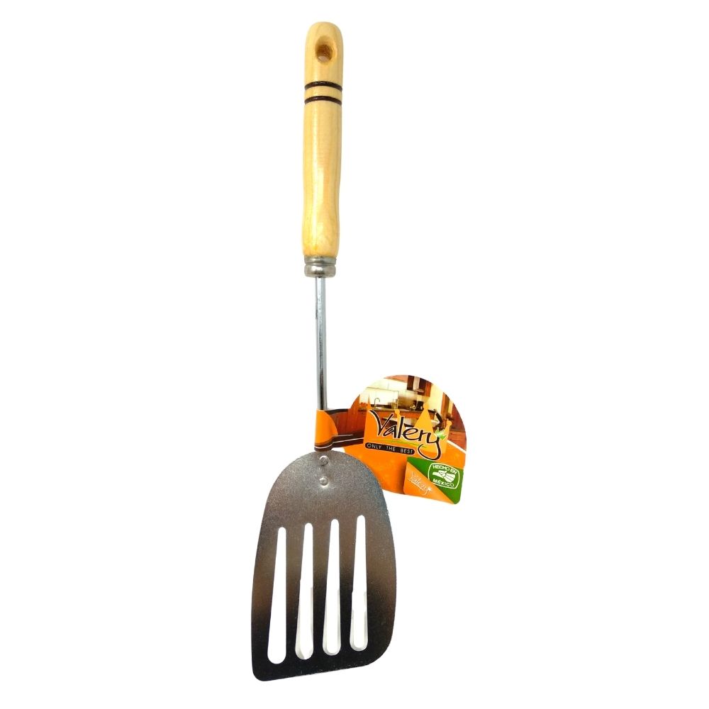 Volteador de acero inoxidable con mango de madera. Perfecto para tus guisos en sartenes de hierro y aluminio. ¡Un básico en tu cocina!