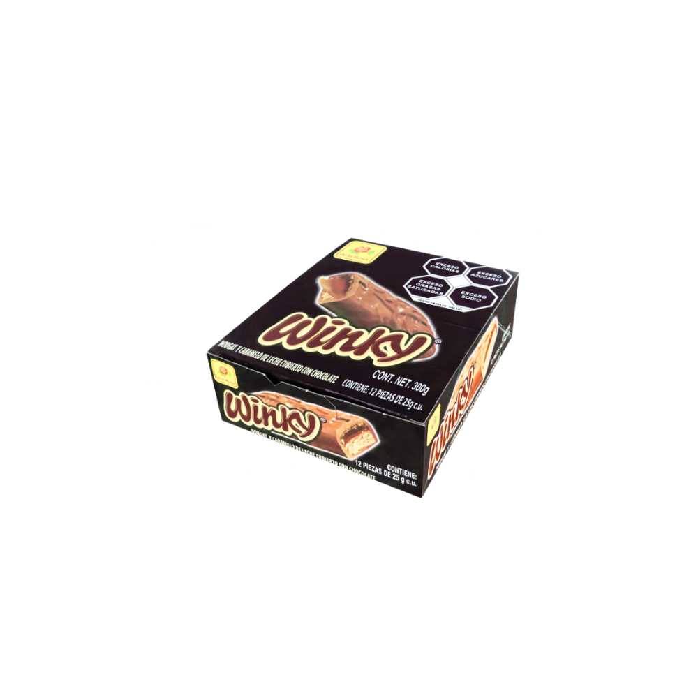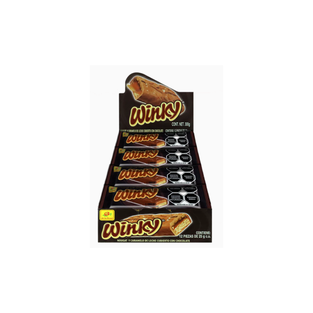 ¡Prueba el irresistible sabor de Winky! Nougat con toffee cubierto de chocolate que deleitará tu paladar ¡Úsalo para tus bolsitas de dulces!